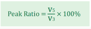 波峰比是用來(lái)檢測(cè)鉛酸電池芯正負(fù)極板之間的絕緣品質(zhì)。波峰比是波形的第五個(gè)電壓峰值與第三個(gè)電壓峰值的電壓比例,當(dāng)電池芯的等效并聯(lián)電阻(Rp)較小或絕緣的品質(zhì)較差時(shí),因?yàn)槟芰繐p耗的較多、較快,導(dǎo)致第五個(gè)電壓峰值變得更小,所以絕緣品質(zhì)較差的波峰比會(huì)比絕緣品質(zhì)較好的波峰比更小。波峰比的大小表現(xiàn)出電池芯正負(fù)極板之間絕緣品質(zhì)的狀態(tài)。