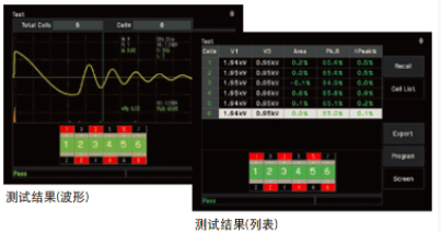· Chroma 19311系列可透過(guò)內(nèi)部電感與電池芯的諧振波形來(lái)分析電池芯的絕緣品質(zhì)差異。檢測(cè)的判定功能共有8種:面積比較(Area)、面積差比較(Diff-Area)、顫動(dòng)量偵測(cè)(Flutter)、二階微分偵測(cè)(Laplacian)、第一電壓峰值判定(V1)、第三電壓峰值判定(V3)、波峰比(Peak Ratio)及波峰差比(ΔPeak %)。