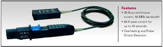 CP030的細小外形設計非常適合于集成度日益提高的電路板測試。小巧的鉗口可以深入到狹窄的空間中,夾緊最大5mm的電流導線,測試30Arms持續電流測試和50Arms的峰值電流,帶寬50MHz