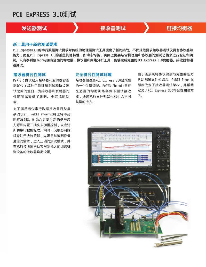 PeRT3 (具有協議使能功能的接收機和發射機容限測試儀)填補了物理層測試和協議層測試之間的空白,為接收機測試和發射機測試提供了更新穎的、更智能化的測試能力。該產品主要是針對于串行數據的收發系統以及其他高速串行信號的通信系統。力科的PeRT3不僅僅是一款新的儀器,更是代表了一類具有完整的新的概念的測試儀器。