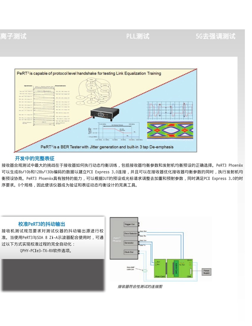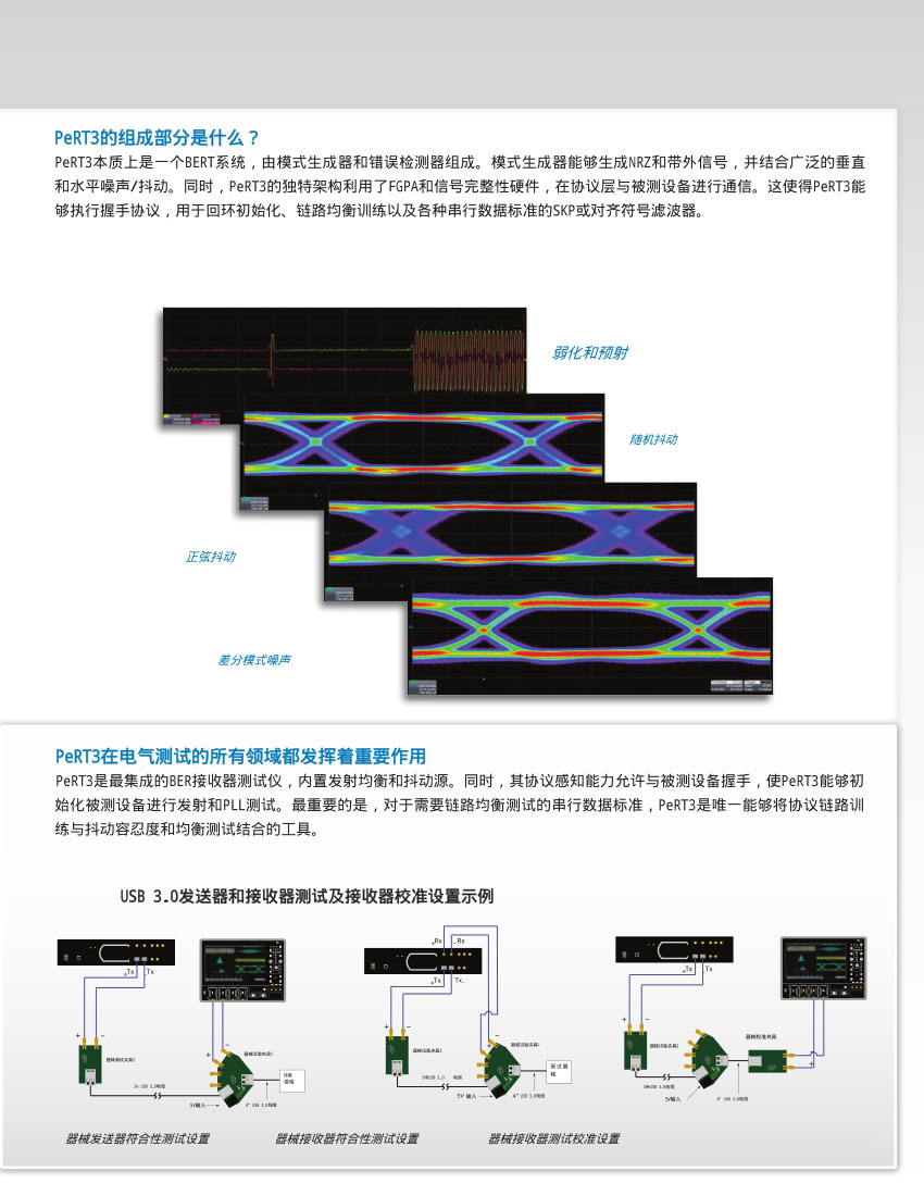 PeRT3 (具有協議使能功能的接收機和發射機容限測試儀)填補了物理層測試和協議層測試之間的空白,為接收機測試和發射機測試提供了更新穎的、更智能化的測試能力。該產品主要是針對于串