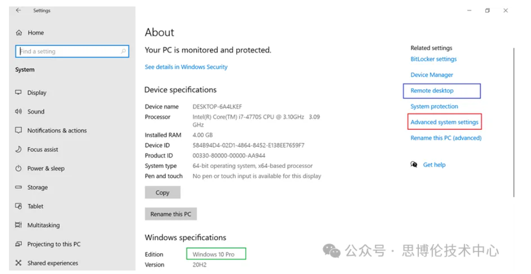 注:從Advanced system setting或Remote desktop處都可進行設置,效果是一樣的。
